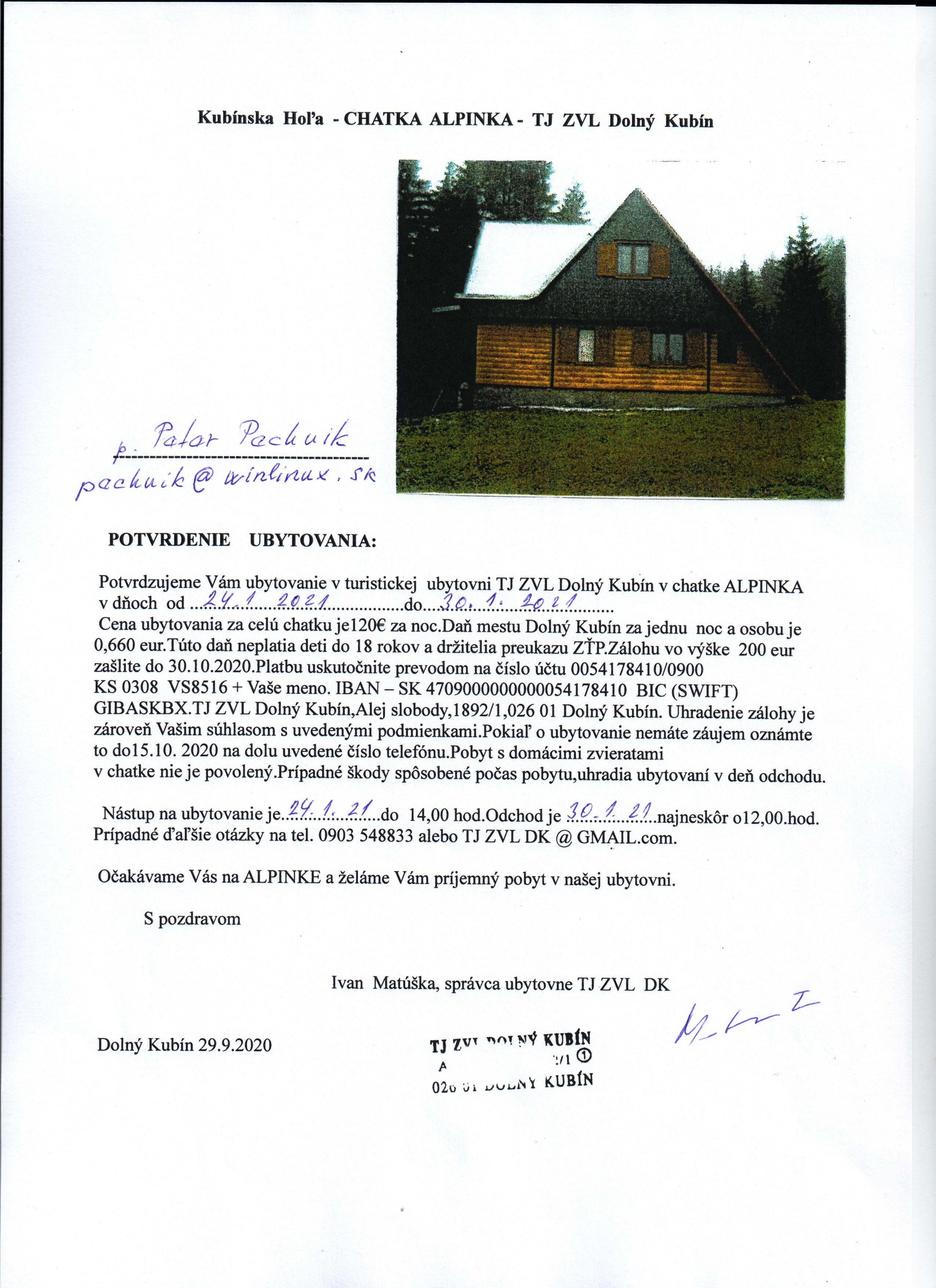 Tu je originálny list od p. Matúšku ( celú zálohu platím ja ).
